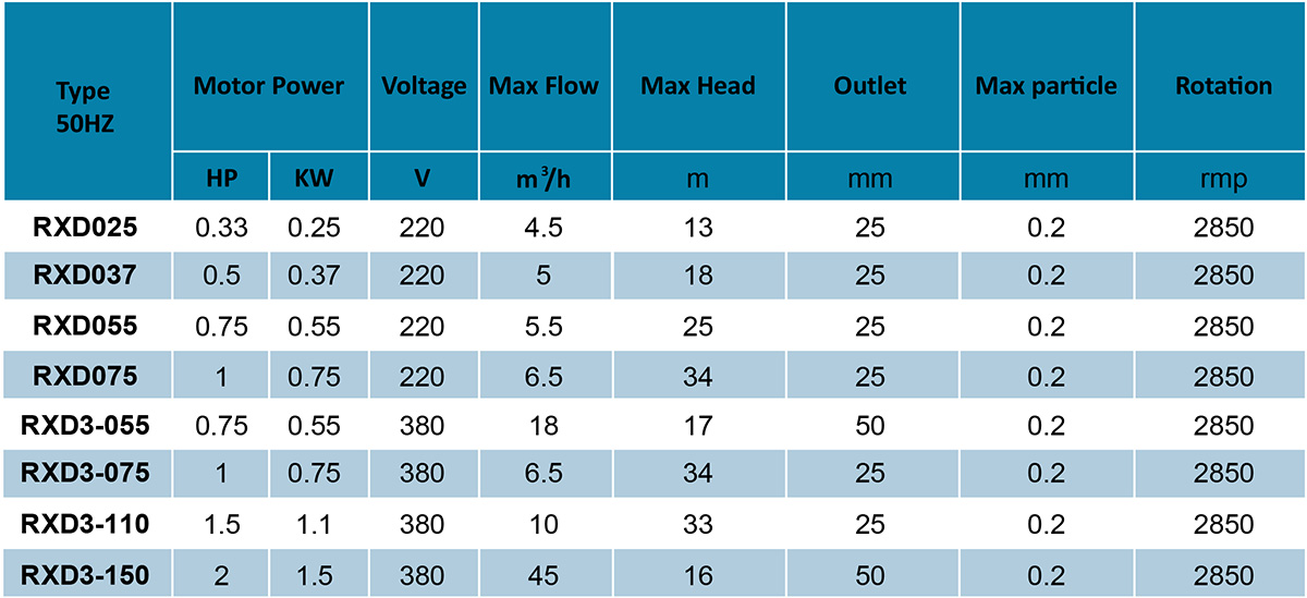 | RXD Drainage Pump | |||||||||||||||||